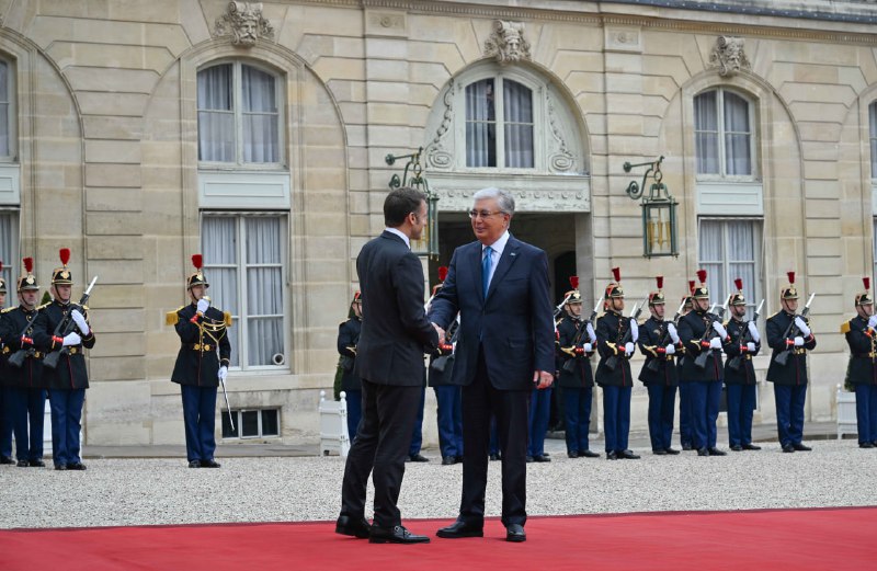 У центрального входа Елисейского дворца Касым-Жомарта Токаева встретил Президент Франции Эмманюэль Макрон, пишет Caravan.kz со ссылкой на Акорду