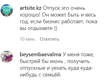 "Отпуск — это очень хорошо! Он может быть и весь год, если бизнес работает, пока вы отдыхаете", "У меня тоже, быстрей бы июнь , получить отпускные и уехать куда куда-нибудь с семьёй", — начали мечтать в комментариях подписчики г-на Алагузова.