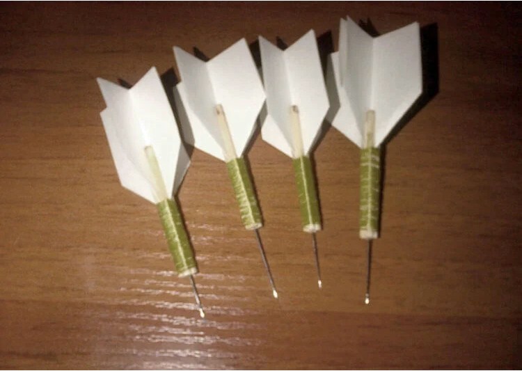 Советские мальчишки обладали хорошей фантазией и быстро сообразили, как сделать дартс самому из четырех спичек, швейной иголки и кусочка бумаги. Несмотря на то, что самодельные дротики метали не только в мишень, а в своих товарищей, особого вреда от них не было. Хоть педагоги и рассказывали страшилки, что якобы в соседней школе такое изделии угодило кому-то в глаз, и теперь нечастный похож на Кутузова, а его обидчик сидит в колонии для несовершеннолетних, на практике самодельные дротики разве что немного царапали кожу.