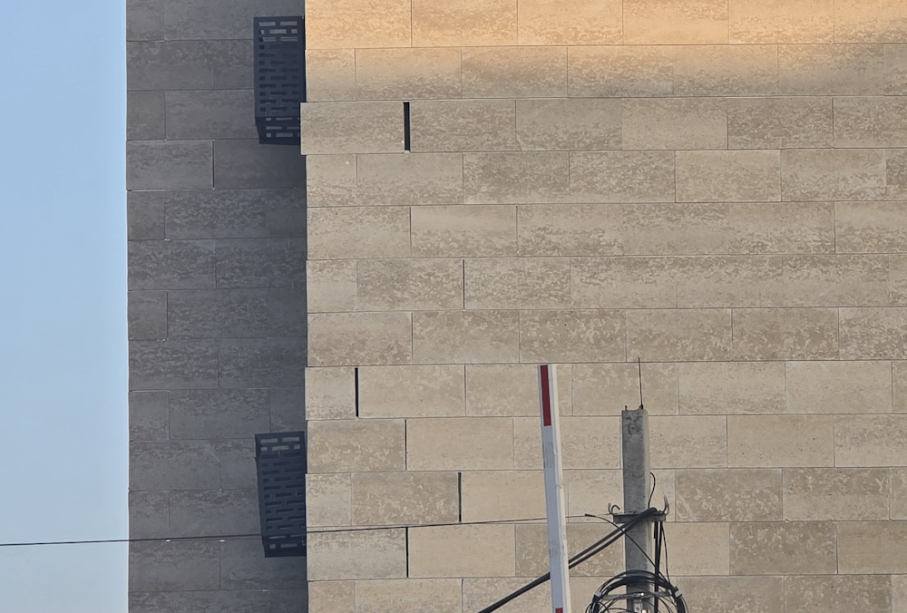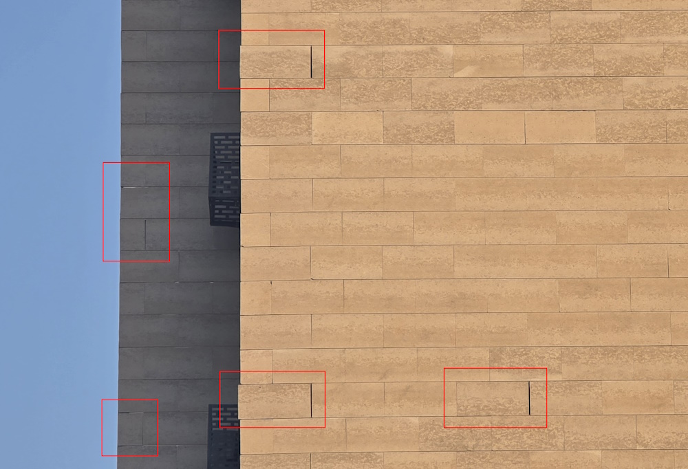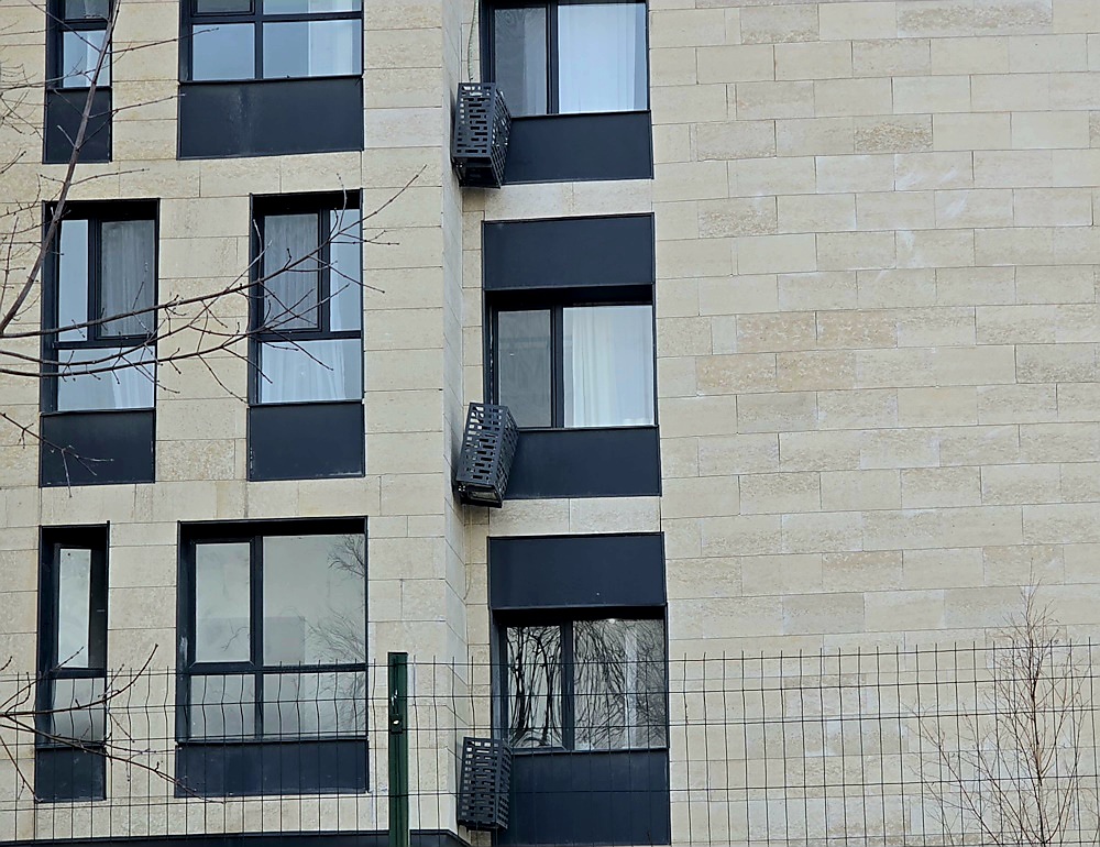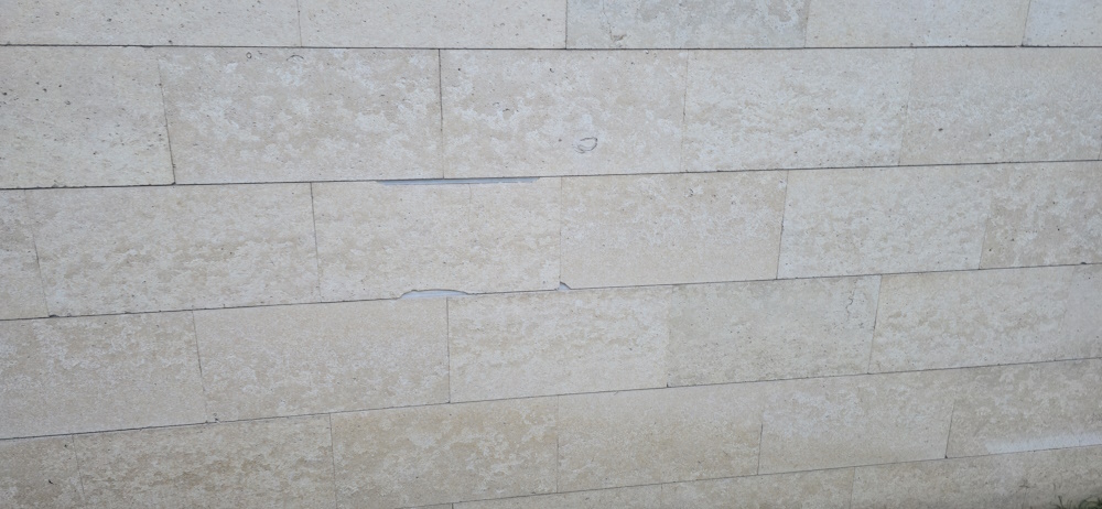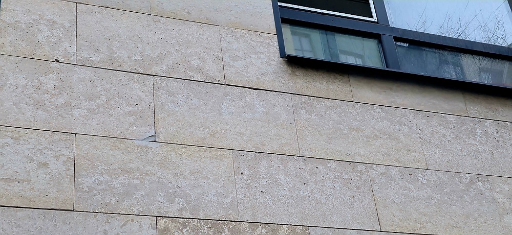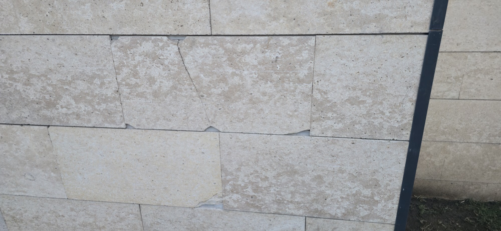 Другой пример – облицовка ЖК City plus 2. Камень заметно крошится, и некоторые швы между плитками явно шире остальных.