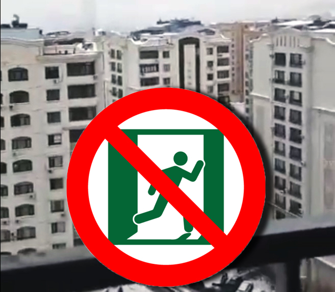В соцсетях ходит видео, как происходила эвакуация жителей Алматы по лестницам после землетрясения. На кадрах окна многоэтажки, в которых мелькают ноги одетых наспех людей, бегущих по ступенькам. Кто в сапогах, кто в тапочках, но все спешат оставить свой дом. Кстати, в рекомендациях ДЧС так и сказано: «В многоэтажных домах после прекращения толчков покиньте помещение». Повторные землетрясения бывают иногда сильнее, чем первые, поэтому лучше оставаться на улице какое-то время. Но из некоторых ЖК люди просто не смогут выйти, оказавшись в смертельной ловушке. Отдельные высотки спроектированы таким образом, что основным средством передвижения на верхние этажи является лифт. Номинально существует эвакуационная лестница, по которой можно спуститься в случае пожара и после землетрясения. Только, чтобы на нее попасть, нужно пройти через подъездный балкон и железные двери, которые могут быть закрыты на ключ.