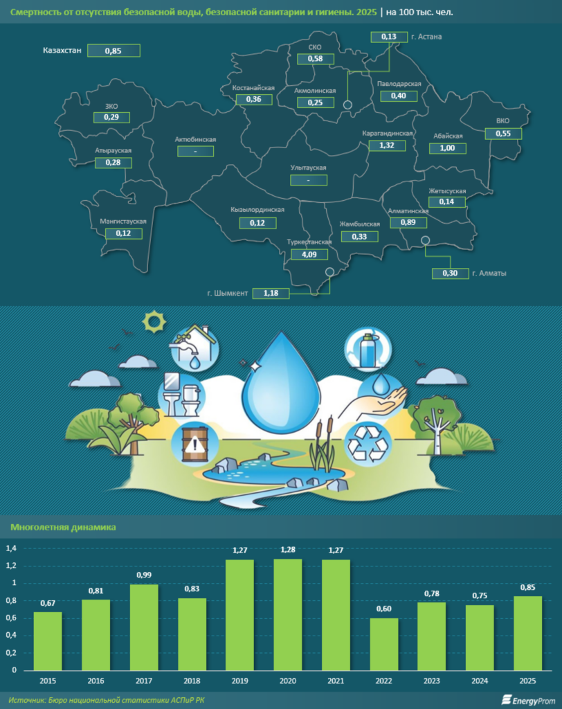 Аналитики на основе данных Бюро национальной статистики изучили, в каких регионах и возрастных группах чаще фиксируются проблемы, связанные с отсутствием доступа к безопасной воде, санитарии и гигиене, пишет Caravan.kz со ссылкой на Energyprom.kz.