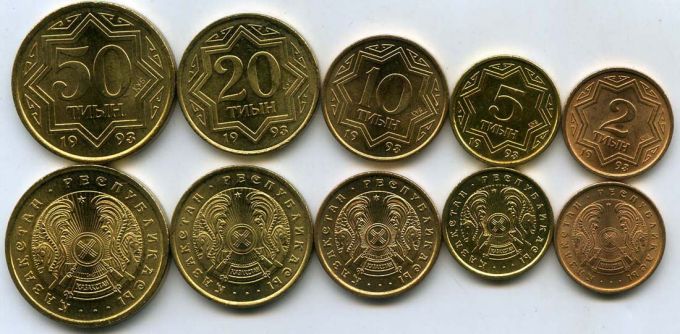 В начале 1994 года в обращение выпустили монеты тенге номиналами 1, 3, 5, 10 и 20 тенге и для замены бумажных тиынов – монеты номиналами 2, 5, 10, 20 и 50 тиын.