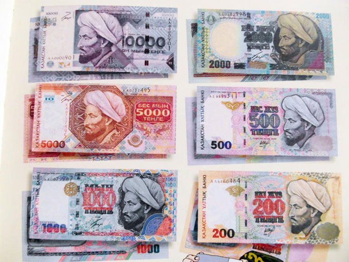 Сегодня банкнотный ряд представлен номиналами банкнот достоинством – 200, 500, 1 000, 2 000, 5 000, 10 000 и 20 000 тенге. Монетный ряд составляет последовательную кратную структуру 1-2-5-10-20-50 и 100 тенге.
