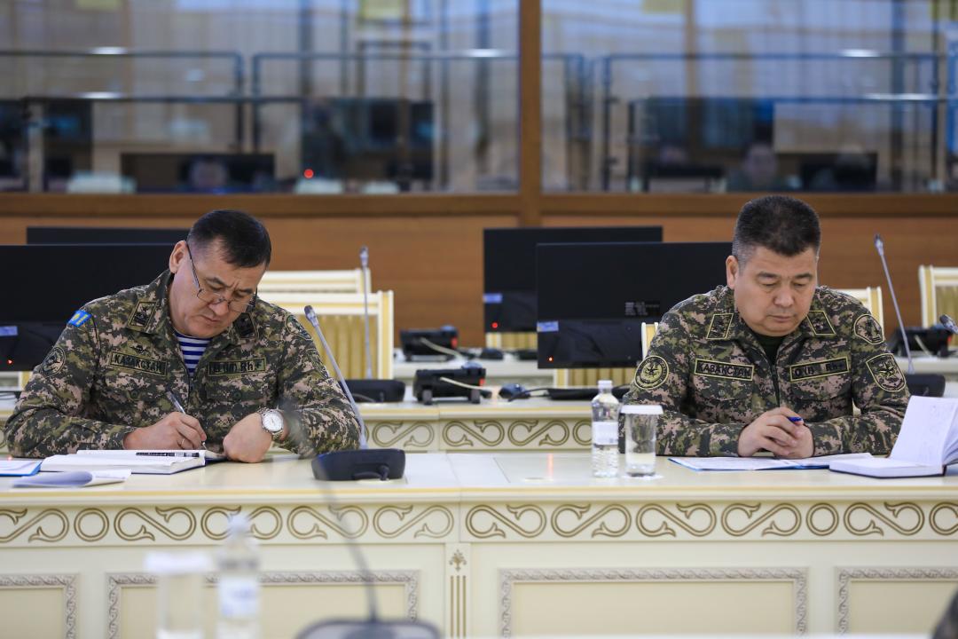 С подробными докладами по своим направлениям выступили также начальники Главного управления военной полиции полковник Руслан Кулумбетов, врио главнокомандующего Сухопутными войсками генерал-майор Каныш Абубакиров и недавно назначенный на должность начальника департамента по воспитательной и идеологической работе полковник юстиции Тлеухан Басхожаев.