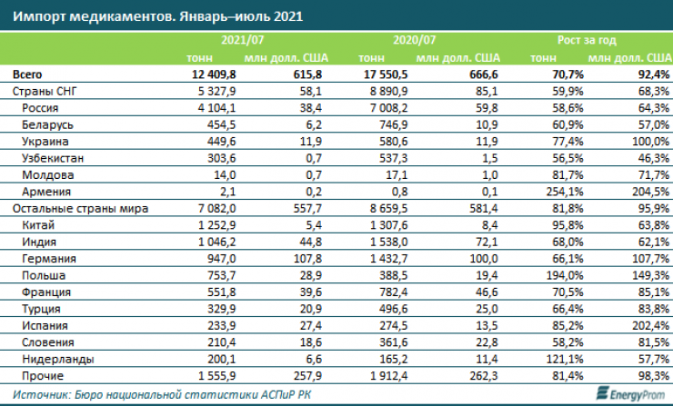 Эксперты агентства Energyprom.kz связывают это со значительным ростом импорта медикаментов.