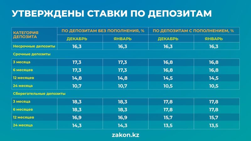 В КФГД отметили, что банки второго уровня самостоятельно принимают решения об изменении ставок по своим депозитным продуктам.