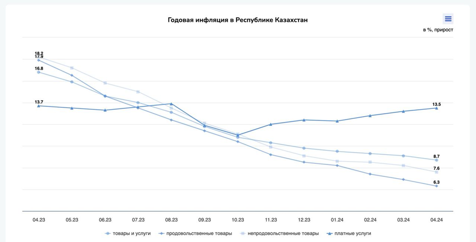 Так сколько стоят деньги в Казахстане. Это показывает реальная базовая ставка. Это базовая ставка минус инфляция.