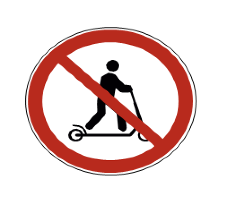 "Движение на электрических самокатах запрещено", который планируется устанавливать на тротуарах для обеспечения безопасности пешеходов и предотвращения возможных аварийных ситуаций.