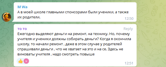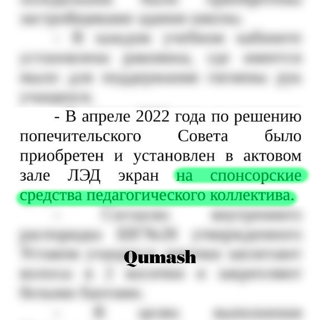 В телеграм-канале Qumash_kz обсудили учителей-спонсоров, которые купили школе LED-экран, передает медиа-портал Сaravan.kz.