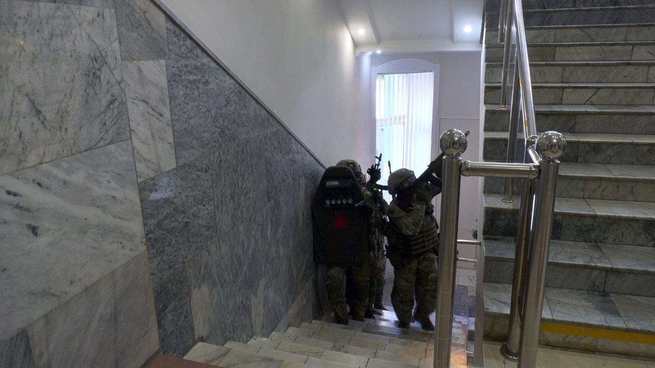 По замыслу учений, административное здание захватила банда террористов. В области «введен» режим чрезвычайного положения.