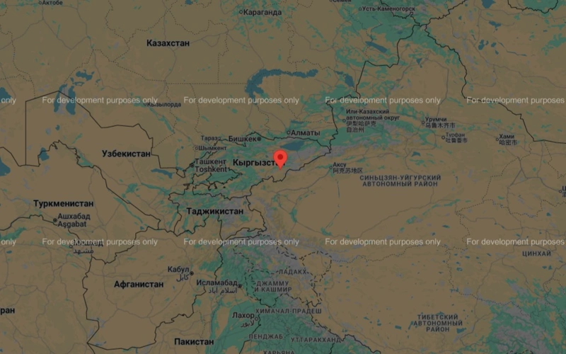 Координаты эпицентра: 41.01 градуса северной широты, 76.26 градуса восточной долготы.