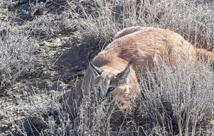 — Это хищное млекопитающее семейства кошачьих. Долгое время каракала относили к рысям, на которых он похож внешне, однако из-за ряда генетических особенностей его выделили в отдельный род. Водится в опустыненных степях. Деятелен каракал главным образом ночью, но зимой и весной появляется и днем. На территории СНГ малочислен, внесен в Красную книгу, — отметили специалисты.