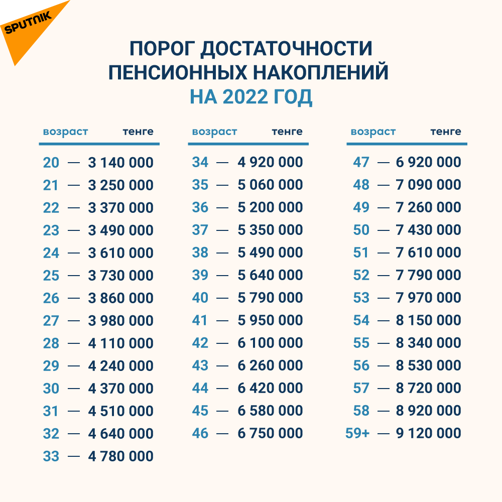Ранее член Национального совета общественного доверия Рахим Ошакбаев опубликовал в Facebook методику определения порога минимальной достаточности пенсионных накоплений. Он заявил, что в методике ошибка и именно из-за нее в 2022 году порог достаточности вырастет почти в два раза.