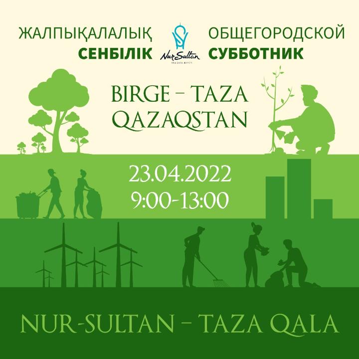 В рамках республиканской акции "Birge – taza Qazaqstan" и экологического месячника 23 апреля в Нур-Султане состоится общегородской субботник по уборке территорий и массовая посадка деревьев, сообщает официальный сайт столичного акимата.