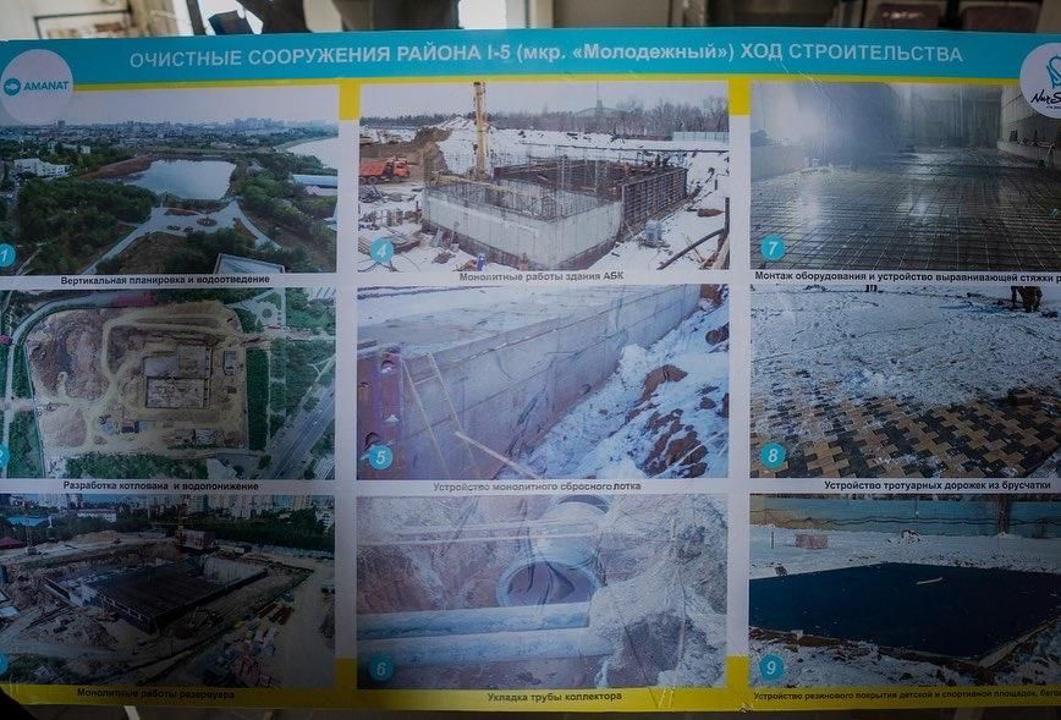 Кроме того, построили очистное сооружение в мкрн Молодежный (пересечение ул. Ташенова и Амман) с реконструкцией̆ подводящих коллекторов. Мощность новых сооружений — свыше 42 тыс. кубометров в сутки. Данное очистное сооружение позволило решить проблему с подтоплениями ул. Ташенова, Бараева, Валиханова, Пушкина, Иманбаевой, пр. Республики, верхней части пр. Тауелсиздик. Отличие данного сооружения в том, что оно позволяет обеспечить очистку дождевых и талых вод перед сбросом в реку Есиль.