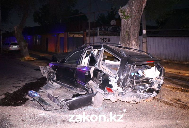 Ночное ДТП произошло на пересечении улиц Жансугурова и Акпаева, сообщает корреспондент Zakon.kz.