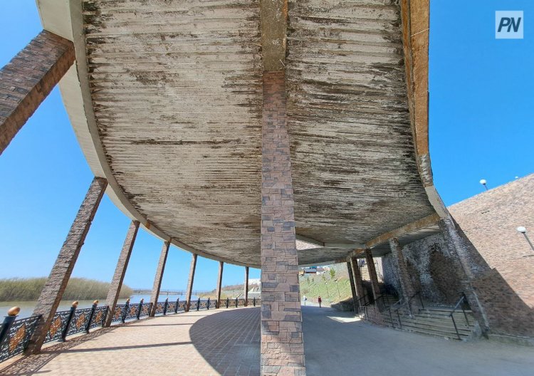 Смотровая площадка последние годы находилась в аварийном состоянии. Предотвращая угрозу обрушения, строители усилили поперечные балки и колонны.