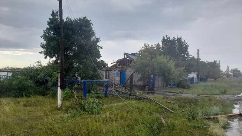 В селе Петропавловка по ул. Степная, 15 частично сорвана кровля с КГУ «Буденовская основная общеобразовательная школа» на площади 50 кв. метров.