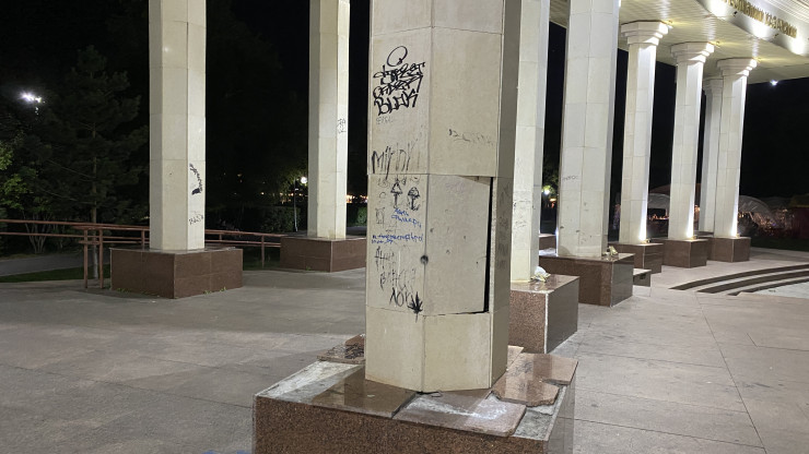 Колоннада в парке Первого Президента в Петропавловске изуродована вандалами. 16 колонн изрисованы граффити. Колоннада большая, и издалека рисунки не заметны. Однако если подойти поближе, то можно разглядеть такие надписи, как "лох", "убить сталкера", и другие. Одна из колонн как будто превратилась в доску объявлений для знакомств. На ней номера телефонов, ники в Instagram и "ВКонтакте".