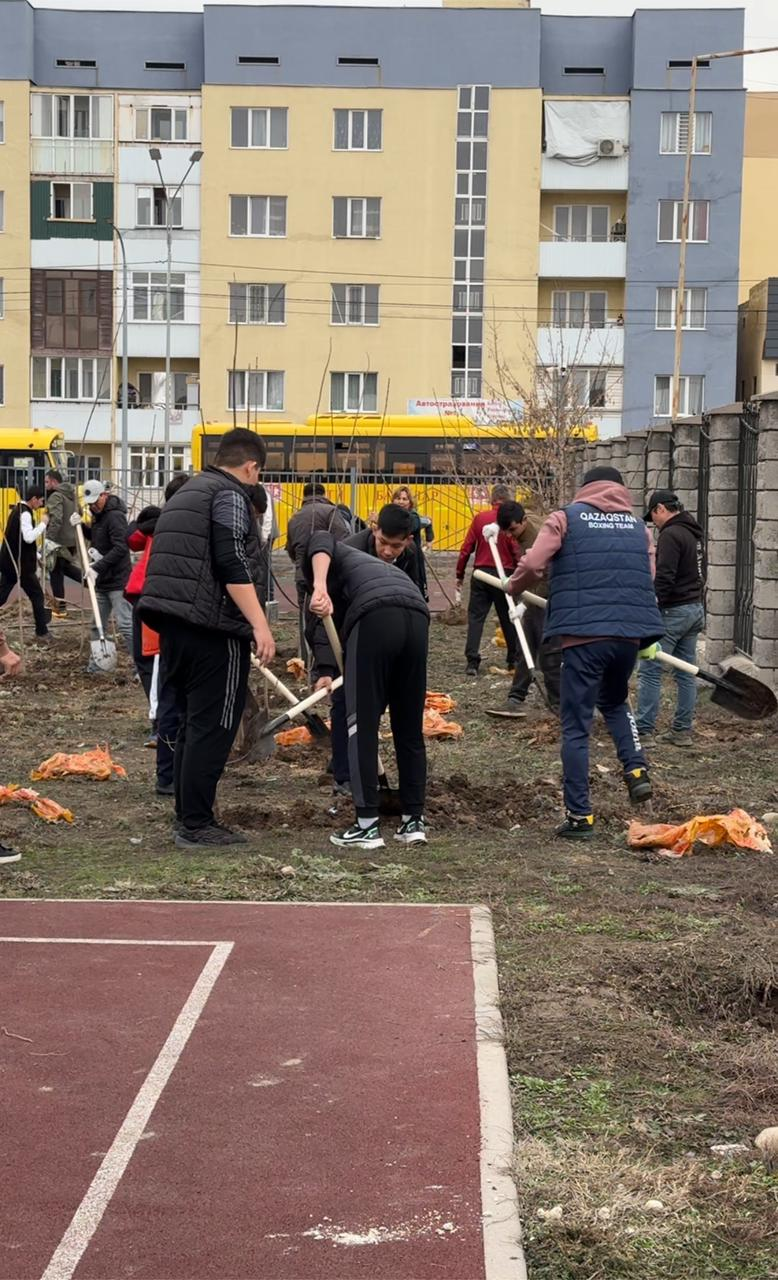 В Ауэзовском районе 125 туй были высажены на футбольных полях школ №116 и №119. В посадке приняли участие ветераны района, молодежь районного комьюнити-центра, школьники и другие добровольцы.