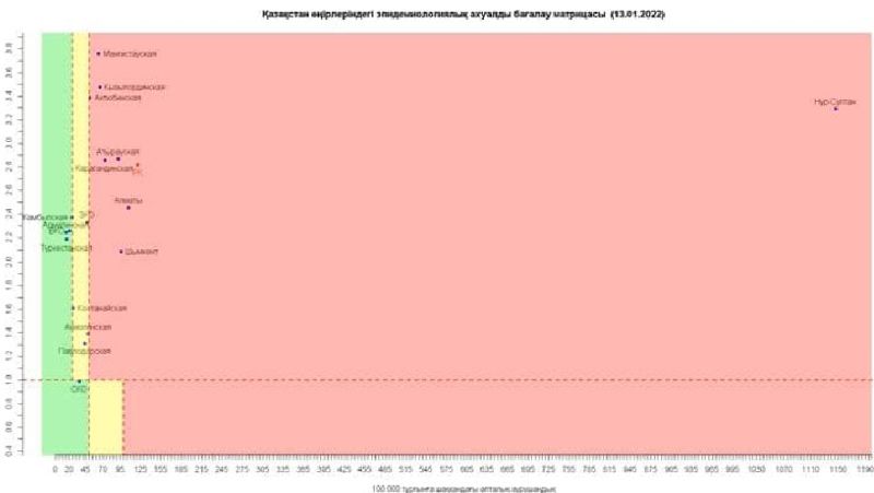 В «зеленой» зоне: Алматинская, Туркестанская, Жамбылская, Северо-Казахстанская, Восточно-Казахстанская области.