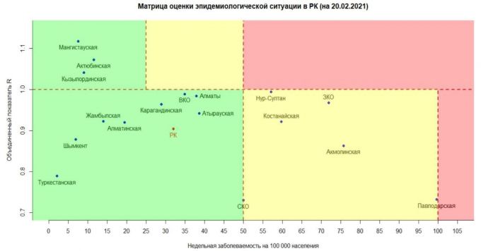 В "желтой" зоне: Нур-Султан, Акмолинская, Западно-Казахстанская, Костанайская, Павлодарская, Северо-Казахстанская области.