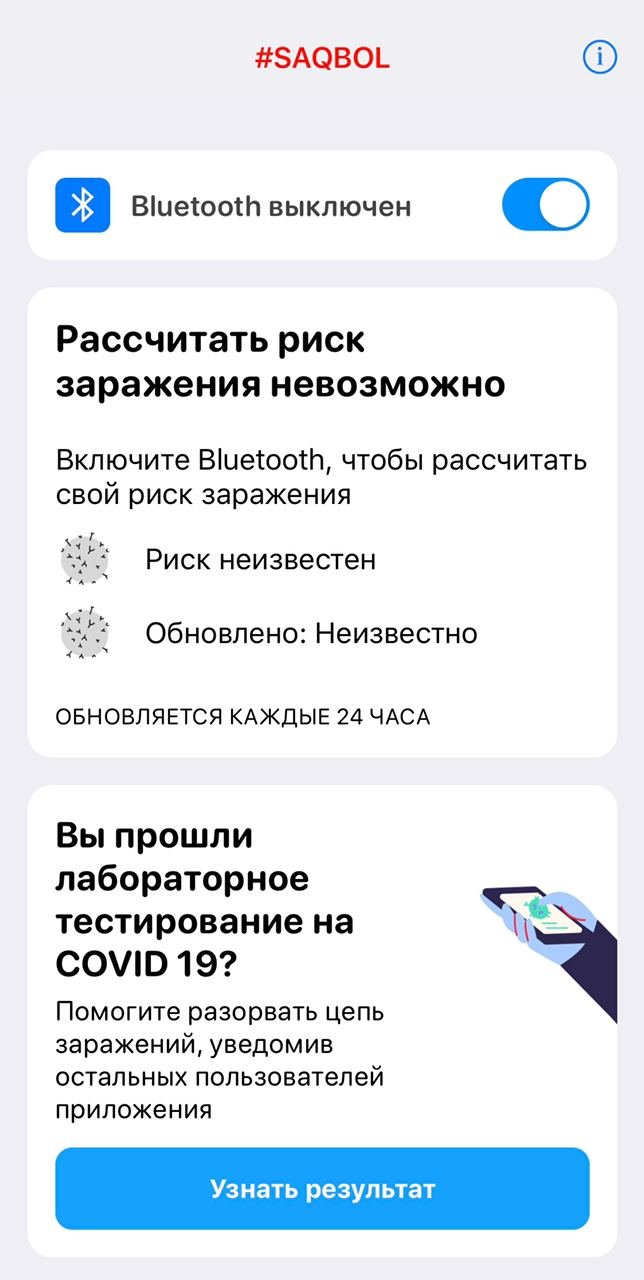 Приложение «Saqbol» представило министерство цифрового развития, инноваций и аэрокосмической промышленности Казахстана. Зараженные граждане могут через приложение предупредить других пользователей, что имели с ними контакт в течение последних двух недель на расстоянии менее двух метров и в течение более 15 минут.
