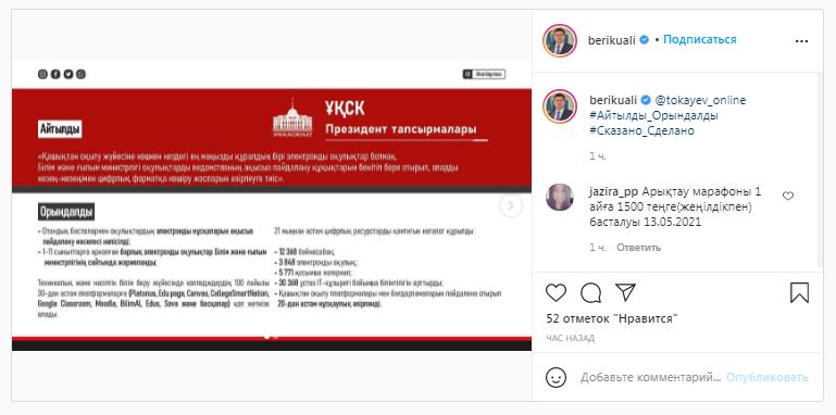 Как сказал Касым-Жомарт Токаев, одним из наиболее важных инструментов при переходе на дистанционное обучение являются электронные учебники, сообщает Caravan.kz.