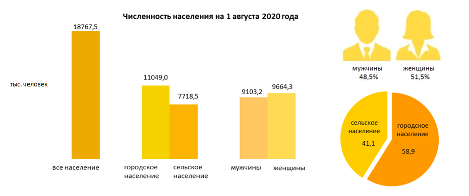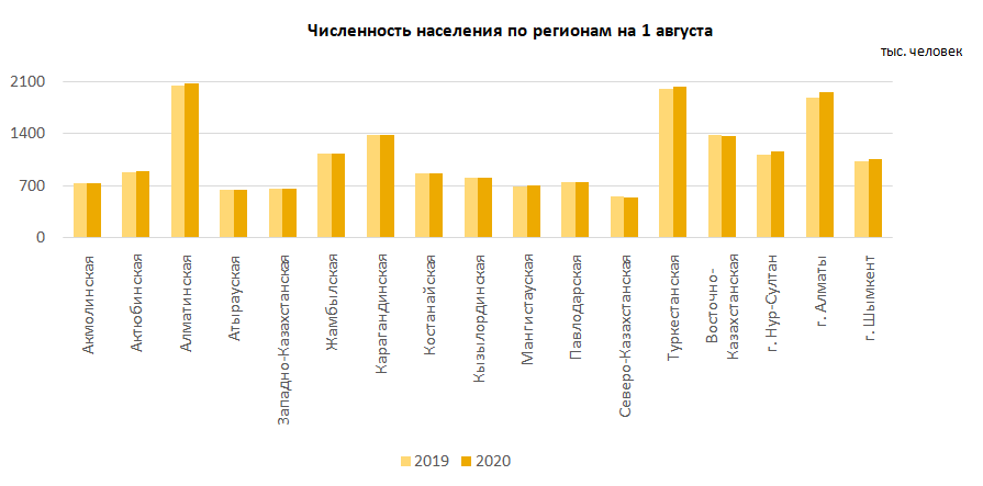По сравнению с 1 августа 2019 года численность населения увеличилась на 238,6 тыс. человек или 1,3%.