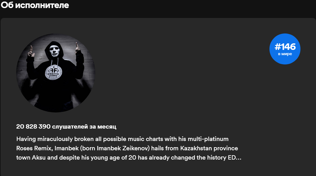 Напомним, Иманбек Зейкенов прославился благодаря своему ремиксу на песню "Roses" американского рэпера SAINt JHN. За несколько дней трек вошел в топ-10 Apple Music, набрал более 6,5 миллиона просмотров в музыкальном приложении Shazam, занял пятое место в чарте Яндекс-музыка, собрал четыре миллиона прослушиваний на Spotify.