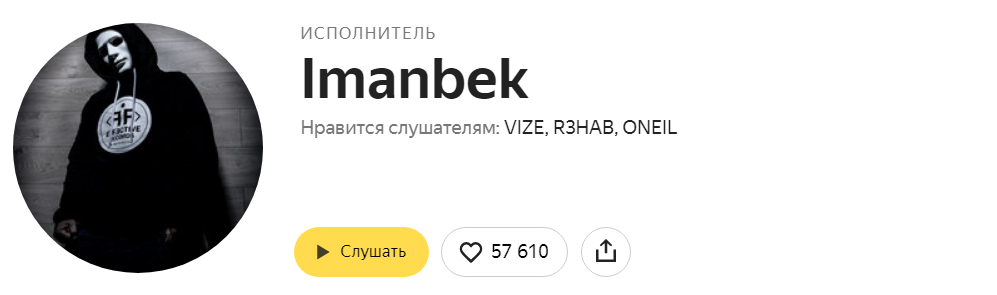 Также можно привести статистику российского сервиса Яндекс.Музыка, где тоже размещаются песни Иманбека Зейкенова. По данным сервиса, всего страница исполнителя собрала 57 610 лайков. Примечательно, что аккаунт казахстанца пролайкали и другие исполнители, которые тоже размещают свой контент на сервисе.