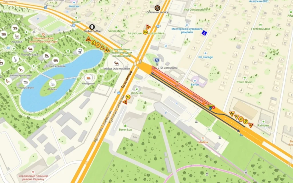 В Шымкенте движение по проспекту Байдибек би ограничат на две недели