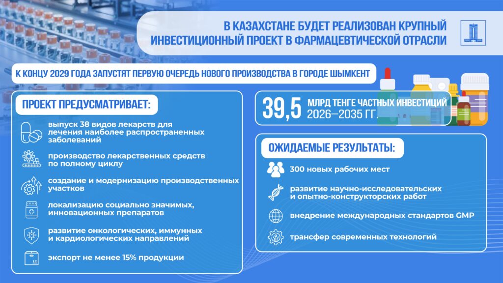 Проект соответствует стратегическим задачам государства, формирует устойчивую технологическую базу отрасли, направлен на обеспечение качества и доступности лекарственных средств для населения, а также на укрепление экспортного потенциала.