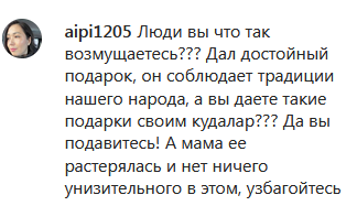 Видео стало популярно в соцсетях. Многие комментаторы высказали свое неодобрение происходящего, осудив и межнациональные браки казашек, и мать невесты, которая обрадовалась подарку.