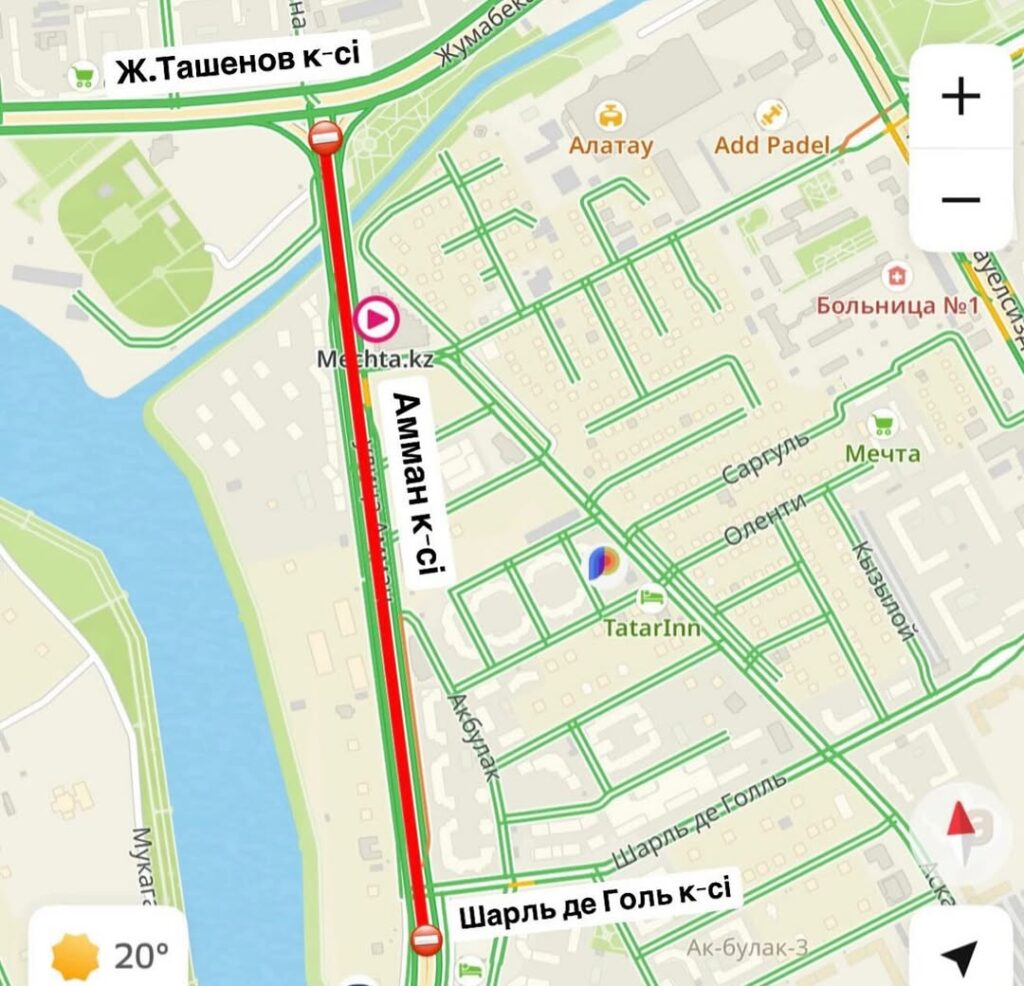 «Информируем жителей и гостей города о начале работ по укладке верхнего слоя дорожного полотна по улице Амман на участке от улицы Ж.Ташенова до улицы Шарль де Голя. В связи с этим с 12 по 16 июля будет частично перекрыто движение на участке. При этом движение автотранспортных средств будет организовано поэтапно в обоих направлениях по одной из сторон», – говорится в сообщении.