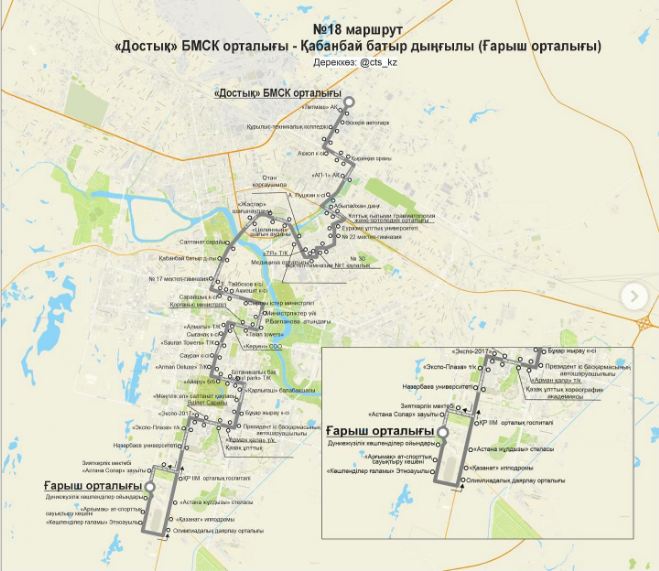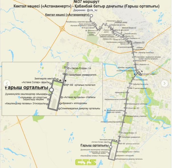 «В целях обеспечения жителей и гостей столицы общественным транспортом к местам проведения Всемирных игр кочевников временно изменены схемы движения маршрутов № 18, 37, 303, 323 сроком по 15 сентября включительно!, — сообщили в ТОО «City Transportation Systems»
