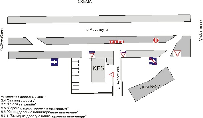 На местном проезде проспекта Б.Момышулы, на участке от улицы Жумабаева до улицы Аманат, перед рестораном быстрого питания KFC организовано движение в одностороннем порядке, с установкой соответствующих дорожных знаков, передает ИА «NewTimes.kz» со ссылкой на пресс-службу ведомства.