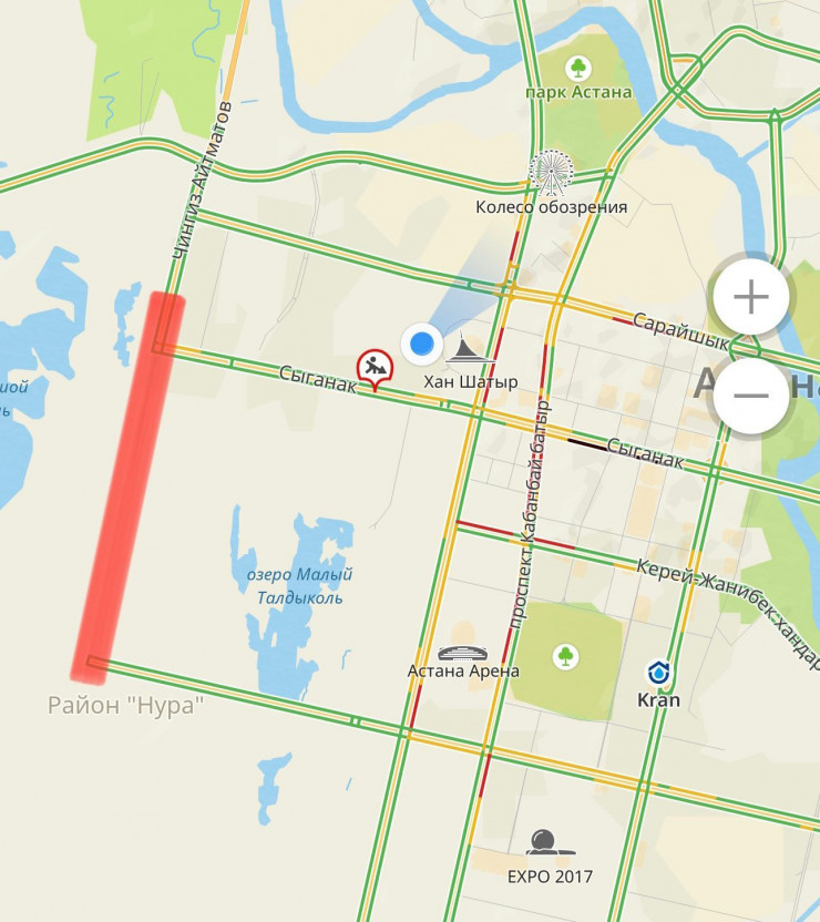 Открытие улицы Айтматова значительно снизит нагрузку на проспект Туран, проспект Қабанбай батыра, улицу Сыганак, улицу Мухамедханова в новой части города
