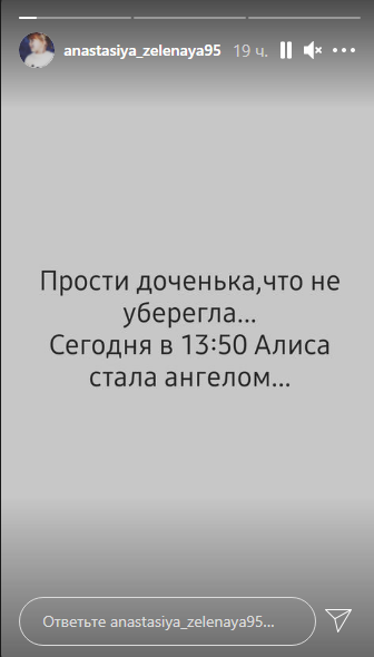 Вчера Анастасия Зелёная написала в сториз о смерти дочери: