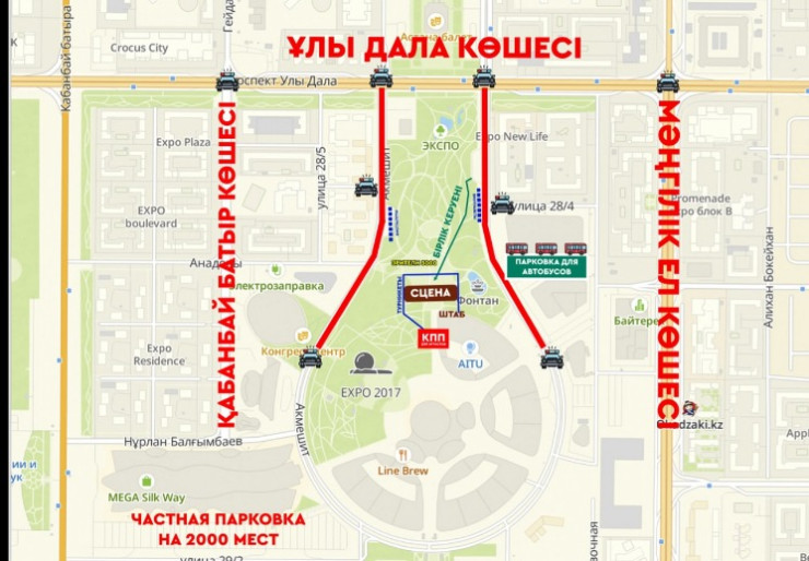 В городе планируется временное закрытие части дорог возле ЭКСПО.