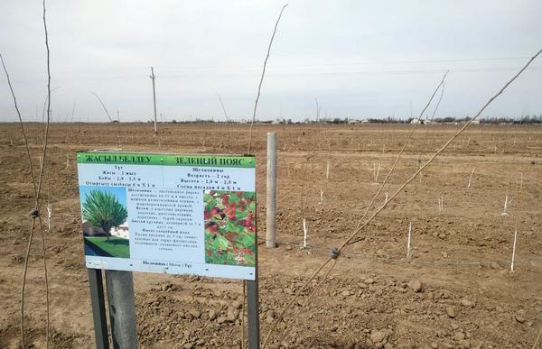 Указание на то, что сливовый сад расположен вдоль дороги в аэропорт Туркестана, на территории сельского округа Шага, мало помогает в его нахождении. С двух сторон автомагистрали тянутся свежие посадки зеленого пояса духовной столицы. Глядя на ряды тоненьких саженцев, сейчас трудно представить, что вскоре дорогу будет обрамлять изумрудная лесополоса. Но на помощь людям со слабой фантазией приходят небольшие красочные баннеры с информацией о высаженных деревьях и иллюстрацией, какими они должны быть в ближайшем будущем. Понятно, что и сливовый сад ни пышным цветом, ни сочной зеленью обнаружить себя не мог.