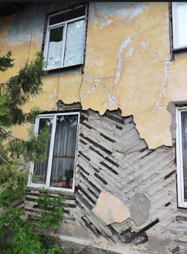 Дома, которые планируют снести — сплошь двухэтажки. Назвать хотя бы один из них зданием в хорошем состоянии, пригодном для комфортного проживания, как-то не поворачивается язык. Обвалившиеся куски штукатурки обнажили деревянно-соломенный каркас, полуразрушенные деревянные лестницы в подъездах, осыпающиеся стены.