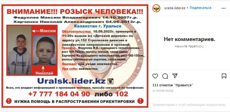 Всех, кому что-либо известно об их местонахождении, просят сообщить об этом по телефону +7-777-184-04-90 или 102.