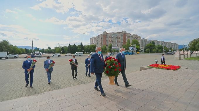 В Усть-Каменогорске Даниал Ахметов возложил цветы к памятнику Абаю, передает Caravan.kz.