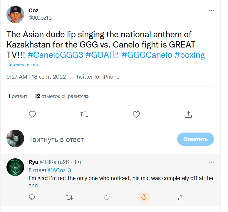 — Фонограмма, под которую азиат спел гимн Казахстана перед боем Головкин — Канело, это великое ТВ!