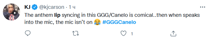— Исполнение гимна под фонограмму перед боем Головкин — Канело комично, а при попытке  заговорить в этот микрофон выяснилось, что он отключен.