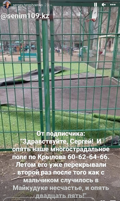 "Опять наше многострадальное поле. Летом его уже перекрывали второй раз после того, как с мальчиком случилось в Майкудуке несчастье, и опять двадцать пять!" — пожаловался карагандинец.