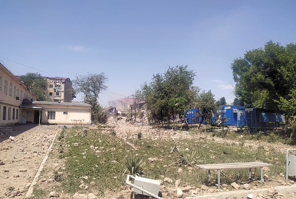 Первоначально предполагалось, что взорвалась кислородная станция, которая находится во дворе перинатального центра. Но оказавшись за полицейским ограждением, мы поняли, что станция уцелела: в тени деревьев лежали укрытые от солнца целые кислородные баллоны. А вот здание аптеки, примыкавшей к территории роддома, восстановлению уже не подлежит.