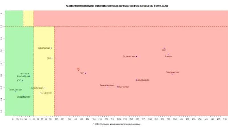 Матрица оценки эпидемиологической ситуации в регионах Казахстана:
